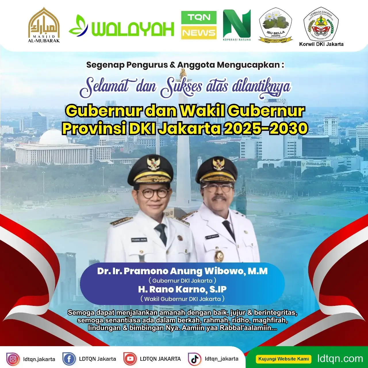 Selamat & Sukses Atas dilantiknya Gubernur & Wakil Gubernur DKI Jakarta Periode 2025 - 2030