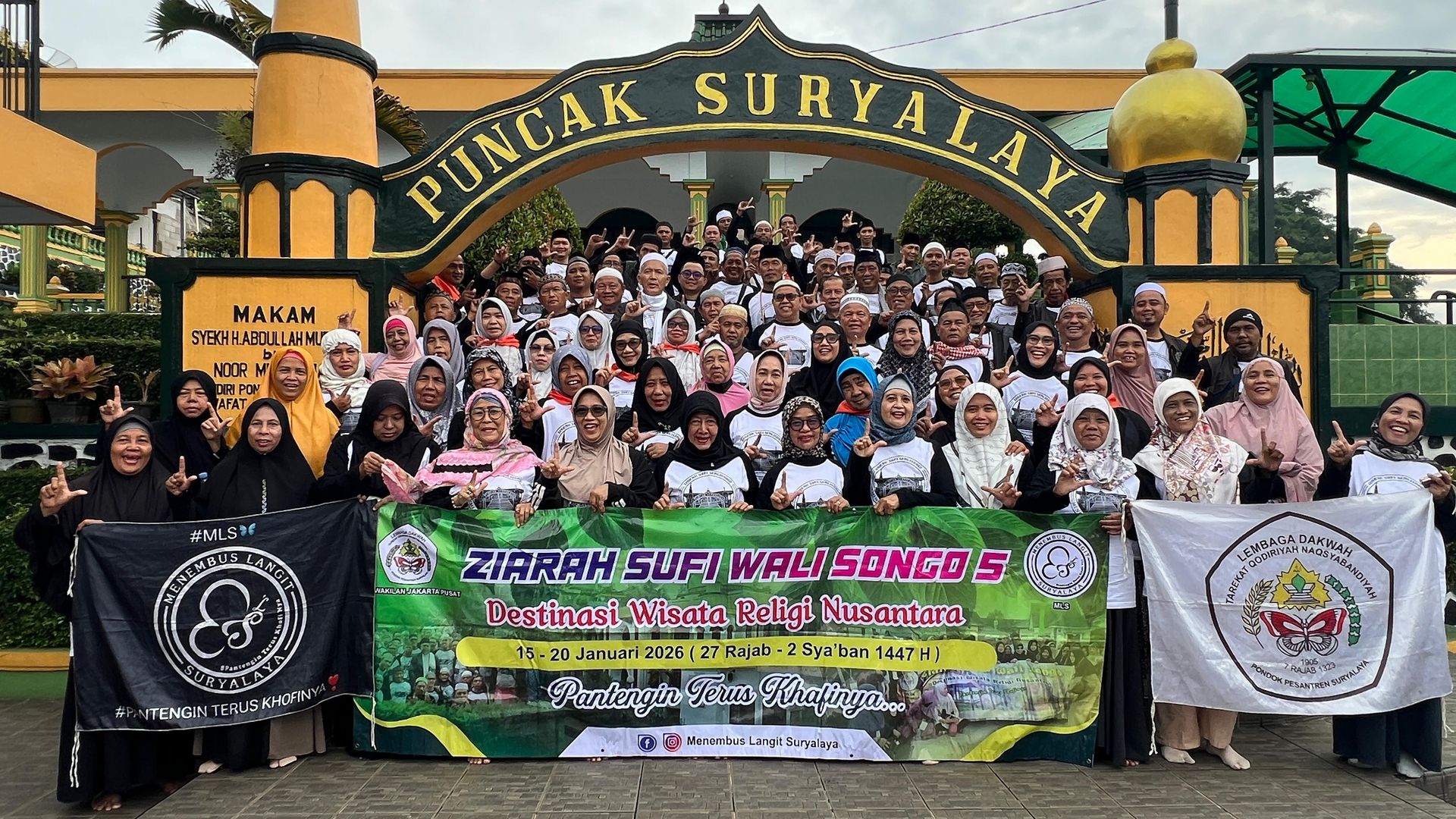 Menembus Langit Suryalaya (MLS) kembali menyelenggarakan Ziarah Sufi Wali Songo untuk kelima kalinya, yang berlangsung sejak 15 Januari hingga 20 Januari 2026. Perjalanan diawali dari TQN Center Jakarta, pada Kamis malam (15/01), 88 peserta ikhwan dan akhwat dibagi menjadi dua bus.