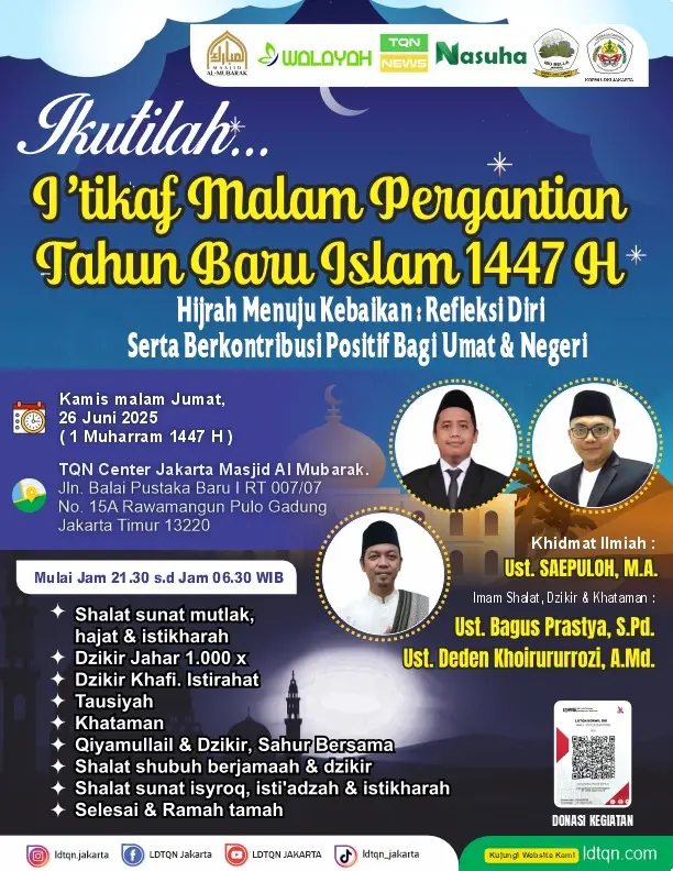 Bersama ini kami menginformasikan kepada Bapak/Ibu/Sdr/i bahwa I'tikaf Malam Pergantian Tahun Islam 1447 H insya Allah akan dilaksanakan pada :