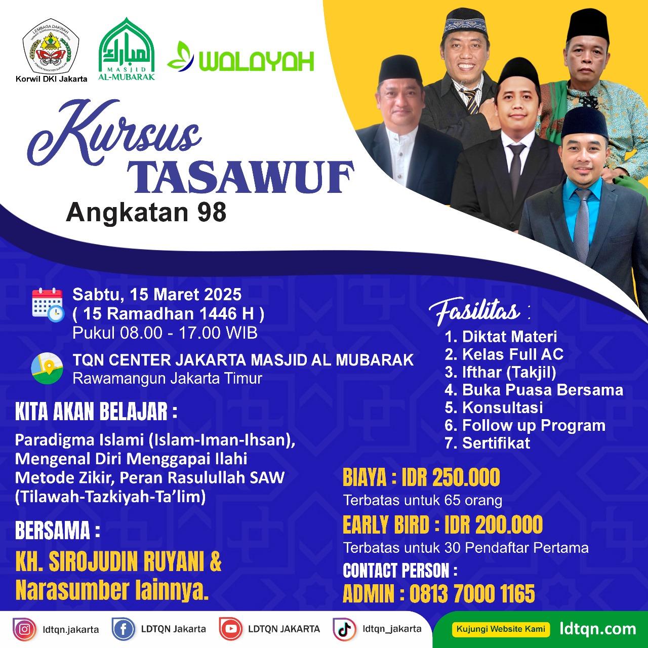 Anda ingin memahami landasan hukum dalam amaliah berthariqah/bertasawuf? Atau Ingin memantapkan keyakinan dalam berthariqah? KURSUS TASAWUF (KT) ANGKATAN 98 adalah jawabannya!!!