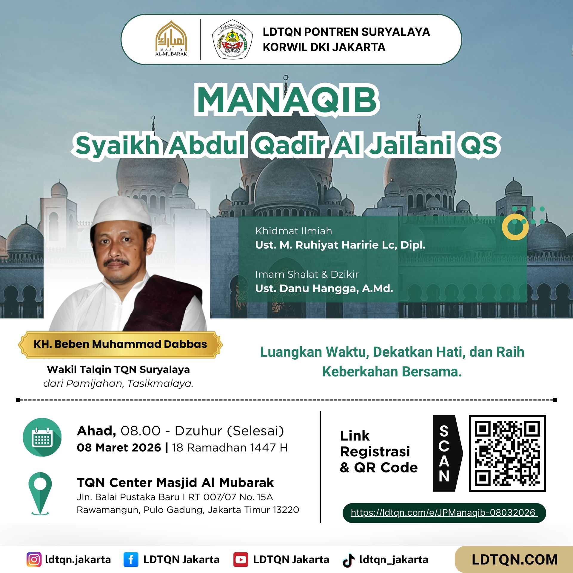 LDTQN Pontren Suryalaya Korwil DKI Jakarta mengundang kaum muslimin dan muslimat untuk menghadiri Majelis Manaqib Syekh Abdul Qadir Al-Jailani QS.